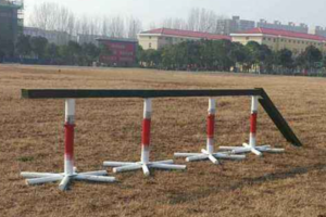 ⑤送军粮:参赛选手用扁担挑两袋“粮食”,用扁担代替接力棒,走过低桩网,返回出发点,下一名选手接力完成任务,以此类推。按团队完成时间计算名次,如未走完低桩网则罚时1分钟。